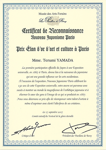 Parisエランドール芸術文化金賞を賜る